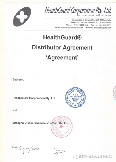 热烈祝贺上海洁宜康成为澳大利亚HEALTHGUARD?公司中国地区总代理!