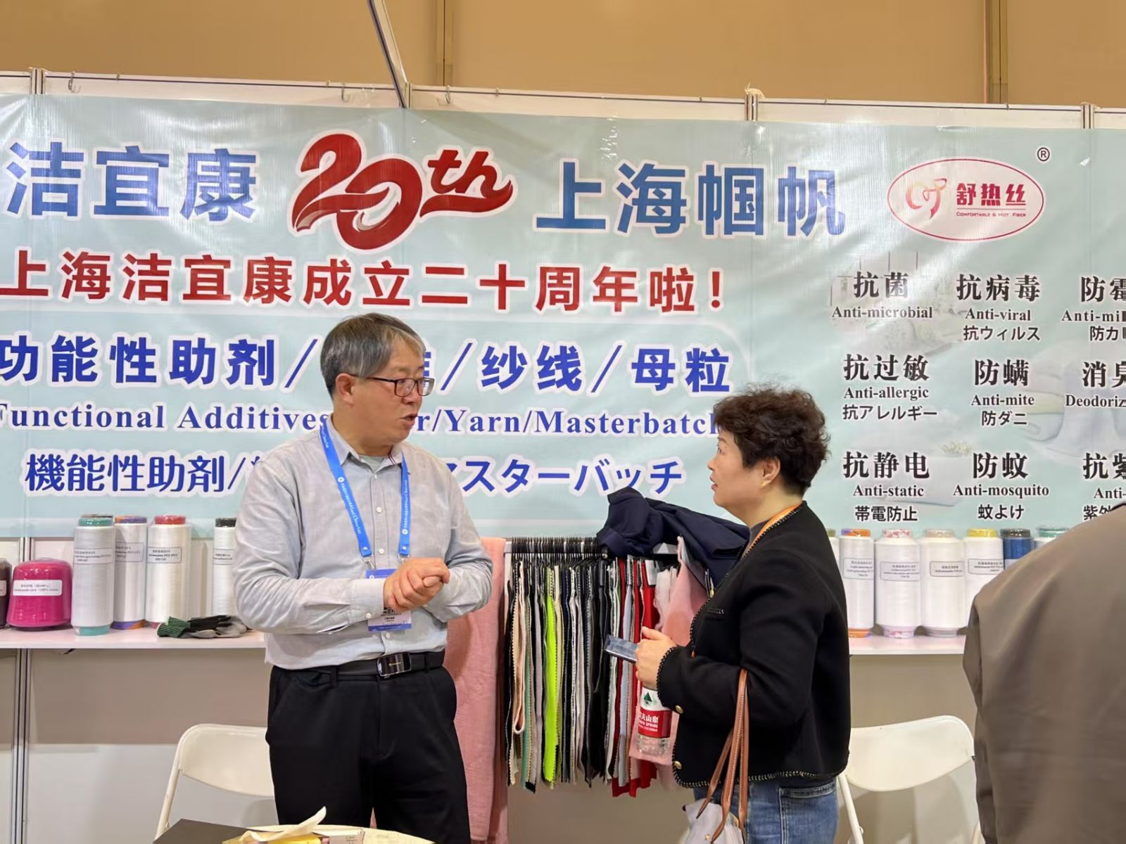 在本届展会期间,两家公司携手研发的功能性助剂、功能性母粒以及功能性纤维/纱线等创新产品,成功开辟了多元化的国际市场,并进一步聚焦于国际市场。此举为推动纺织行业实现“稳中求进,以进促稳”的战略目标贡献了积极力量。同时全国总代理澳大利亚HealthGuard®公司的功能性助剂、母粒和韩国NBIO®公司的生物质多功能助剂。