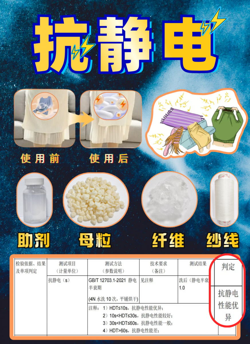 一款适用于所有织物的静电消除产品,具有良好的抗静电效果和耐洗涤性能。