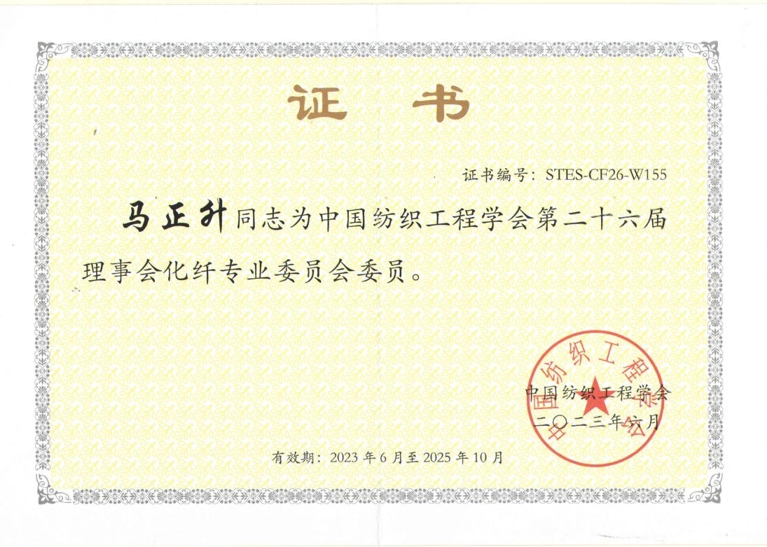 10. General Manager Dr. Ma Zhengsheng was appointed as a member of the Chemical Fiber Professional Committee of the 26th Council of China Textile Engineering Society