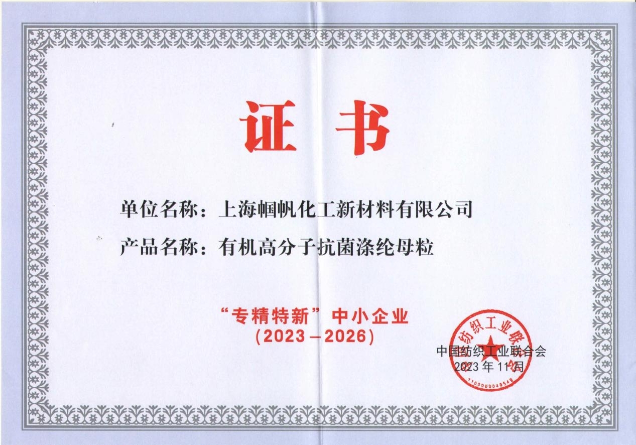 6. Shanghai Guofan was awarded SRDI SME of the textile industry