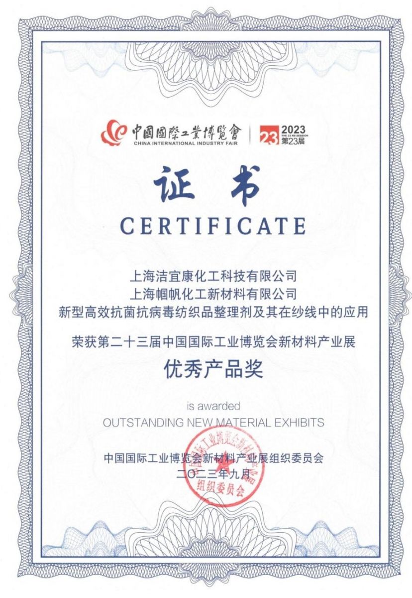 7. Shanghai Jiecon and Shanghai Guofan won the Excellent Product Award of the New Material Industry Exhibition of the 23rd China International Industry Expo
