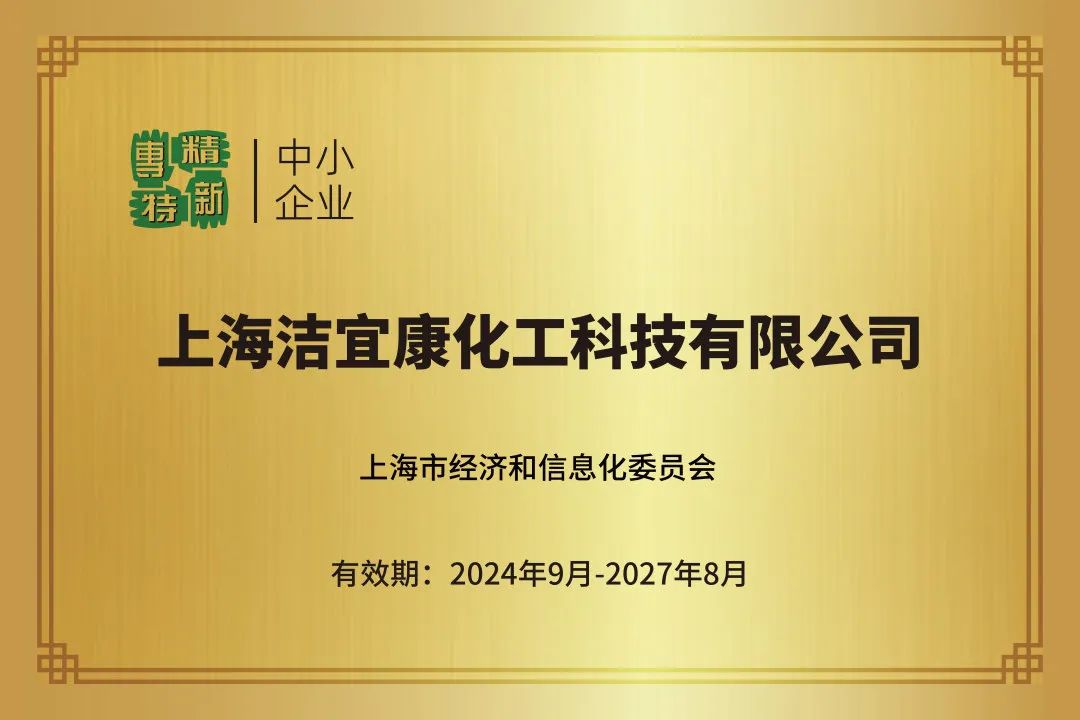 Recently, Shanghai Jiecon Chemicals Hi-Tech Co., LTD. (here in after referred to as "Jiecon"), with its excellent innovation ability, superb technical strength and excellent market performance, once again rose to prominence and successfully won the honorary title of 2024 Shanghai SRDI New Small and Medium Enterprises. This honor is not only a recognition of Jiecon's past efforts, but also an expectation for its future development.