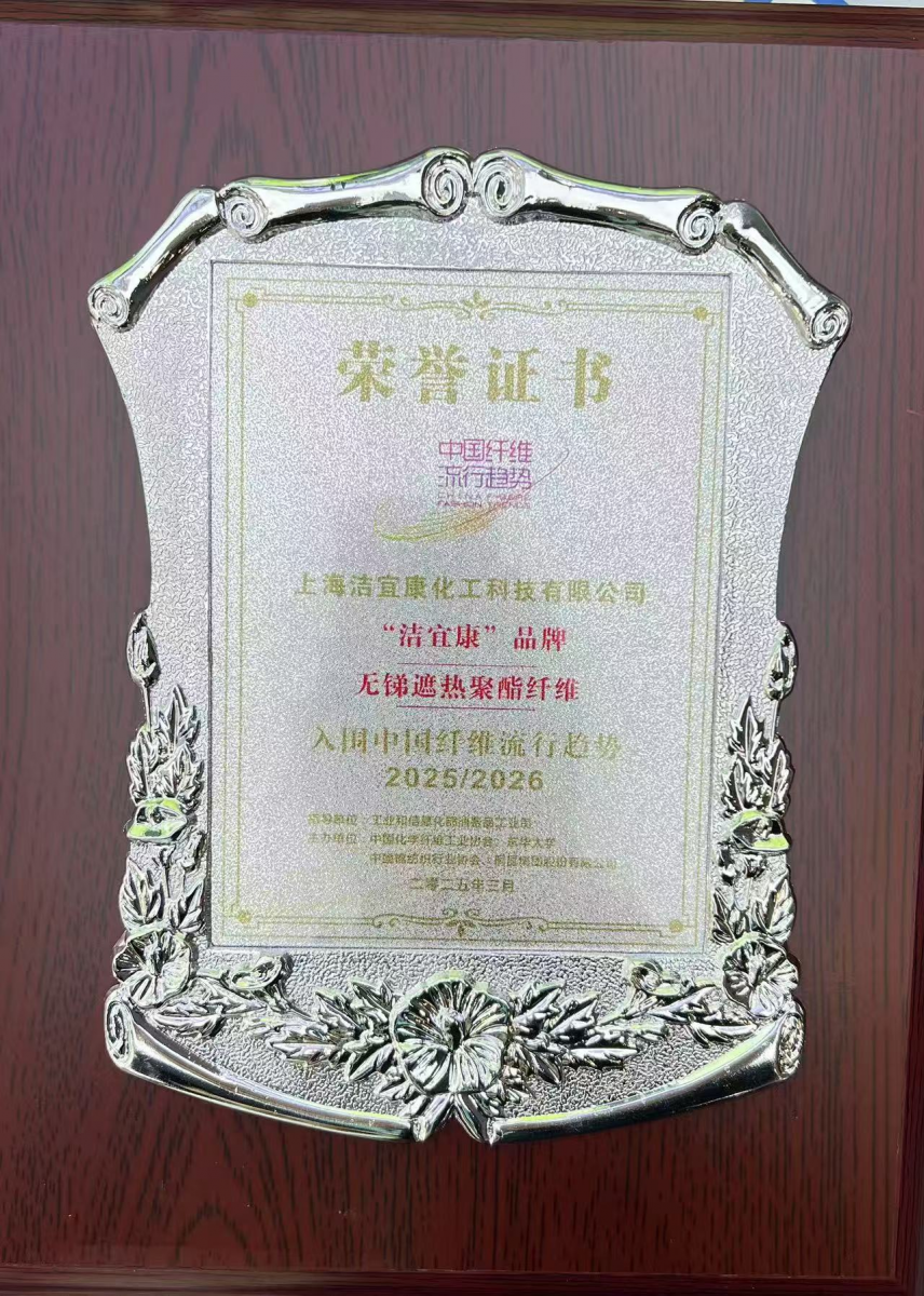 Recently, the authoritative list of China's fiber fashion trends for 2025 was officially released! The core product of Shanghai Jiecon Chemicals Hi- Tech Co., LTD. - "Heat-blocking polyester fiber that is not cotain Dysprosium " - has stood out among over a thousand entries with its disruptive technology and outstanding functional performance, successfully making it to the shortlist and once again demonstrating the innovative hard power of a national brand!