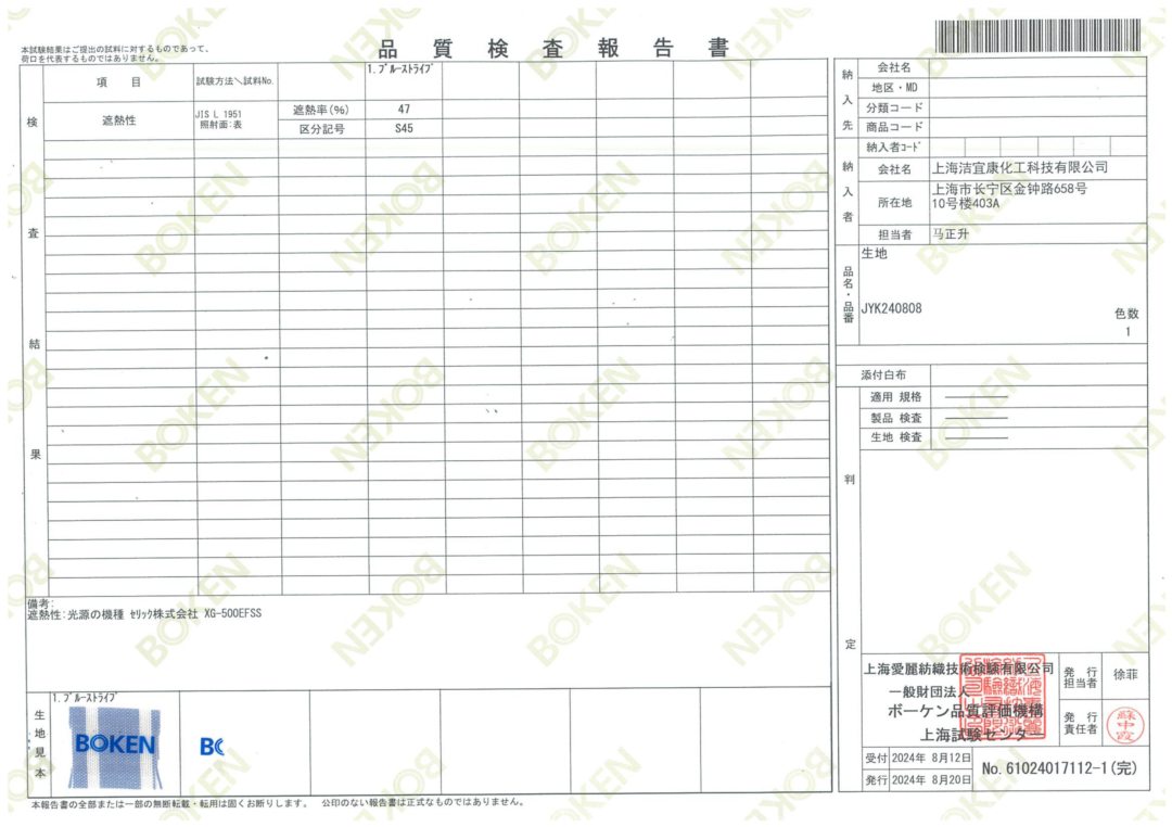 This fabric was sent to BOKEN for inspection. The test results are as follows: