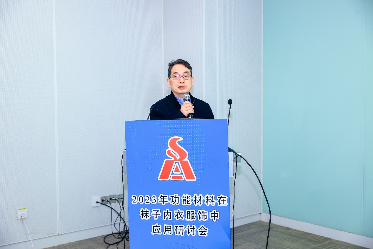 The "2023 Symposium on the Application of Functional Materials in Socks and Underwear Clothing" came into being in this context. As a platform built by social organizations and leading enterprises in the industry, it was of great practical significance for enterprises and universities to actively participate in and seriously carry out market-oriented operation, and to deeply discuss the key and difficult issues in the high-quality development of new antibacterial and epidemic prevention materials in China in the post-epidemic era, so as to build a broad consensus. Beauty and health industry has always been a key development industry in Shanghai, and antibacterial and epidemic prevention new materials, as an important part of it, are also the focus of the New Materials Association. The application seminar aims to build a common technology research and exchange platform for the antibacterial and epidemic prevention new material industry, build an industrial chain ecosystem with new materials as the main line, actively explore the linkage development of the middle and downstream of the industrial chain, and achieve all-round common development of raw materials, processing, testing standards and specific products through full exchanges and cooperation in multiple professional fields. Today, we were gathered together to discuss the high-quality development of the new antibacterial and epidemic prevention material industry in the post-epidemic era. It is also a starting point for building an ecosystem of new antibacterial and epidemic prevention materials that is guided by market demand, closely integrated with industry, university, research and application, and win-win cooperation and integrated development of large, small and medium-sized enterprises. It would play a positive role in promoting the business model innovation of new antibacterial and epidemic prevention materials, supporting forward-looking enterprises to seize market opportunities and win broad development space.