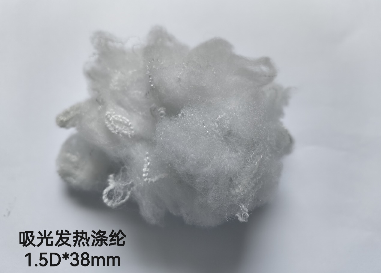 The light-absorbing and heat-generating polyester staple fiber produced using light-absorbing and heat-generating polyester masterbatch is also lighter in color, as shown below: