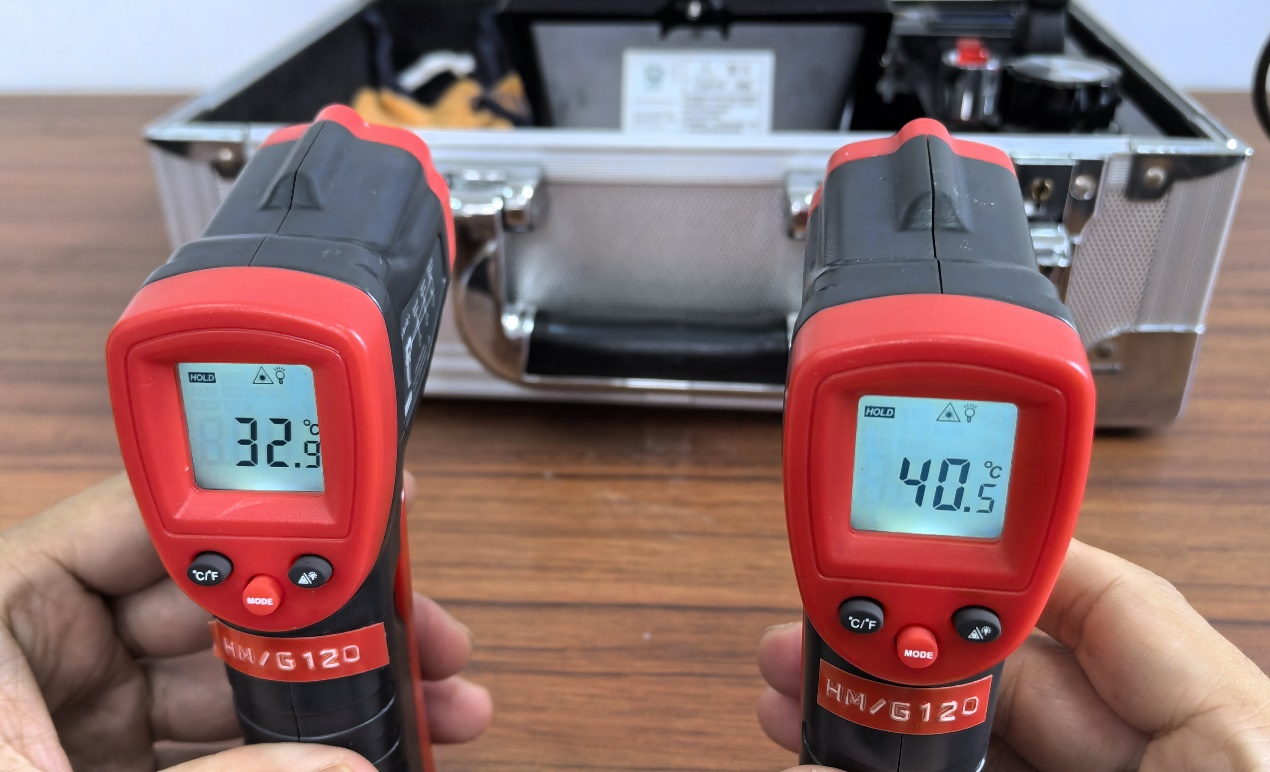 In the research and development department of the company, ordinary polyester staple fiber is used as a blank sample for comparison. In 2 minutes, the light-absorbing and heat-generating polyester staple fiber has reached 7.6℃, and the heating performance is good. The temperature rise and test video are shown below: