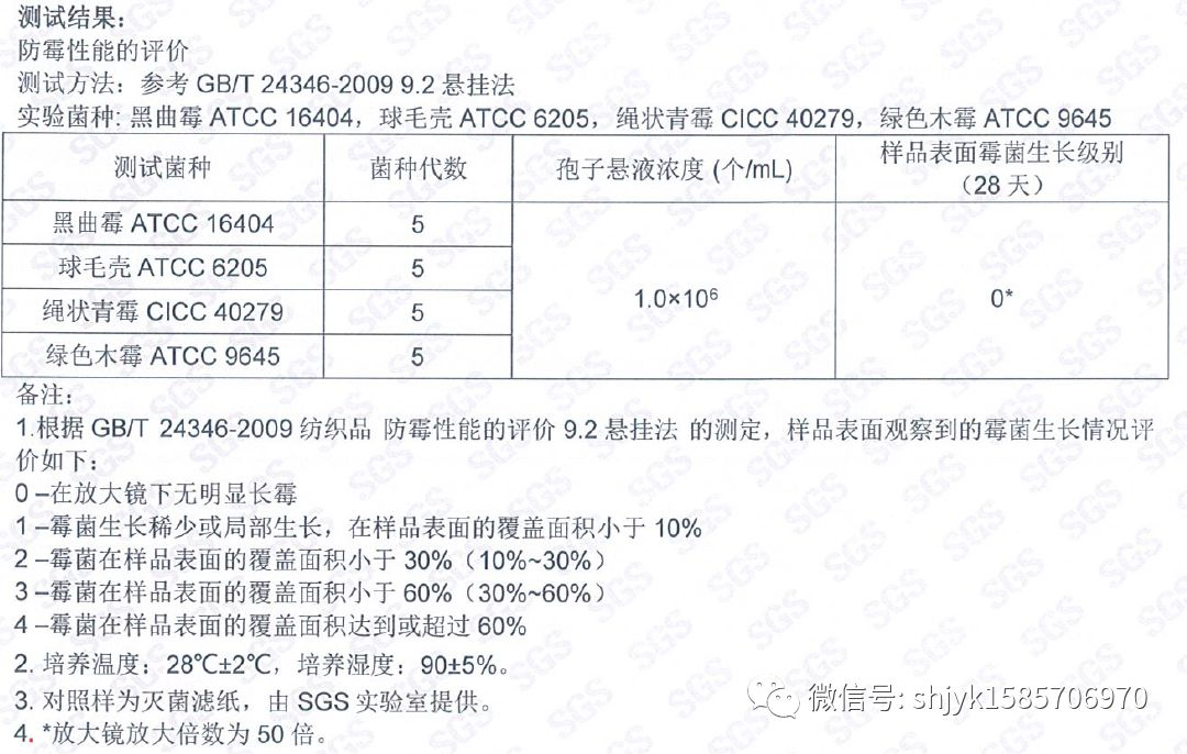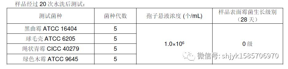 The anti-mildew performance of the product is good, and the anti-mildew performance is still 0   grade after 20 times of washing.