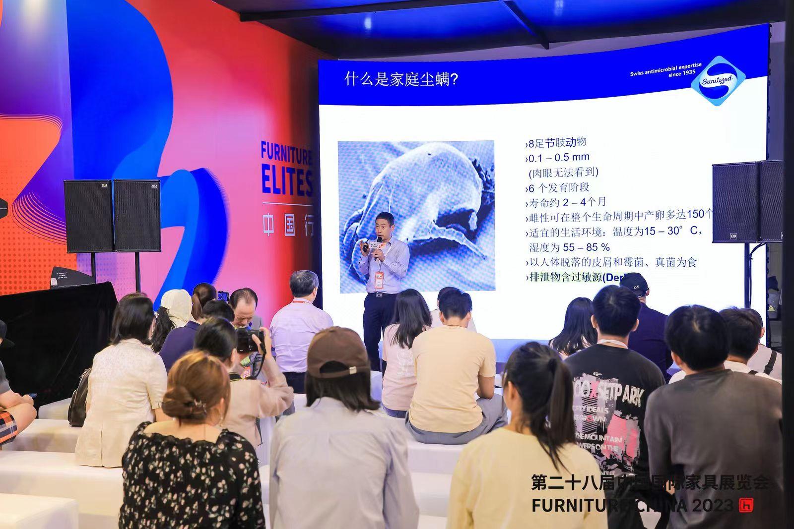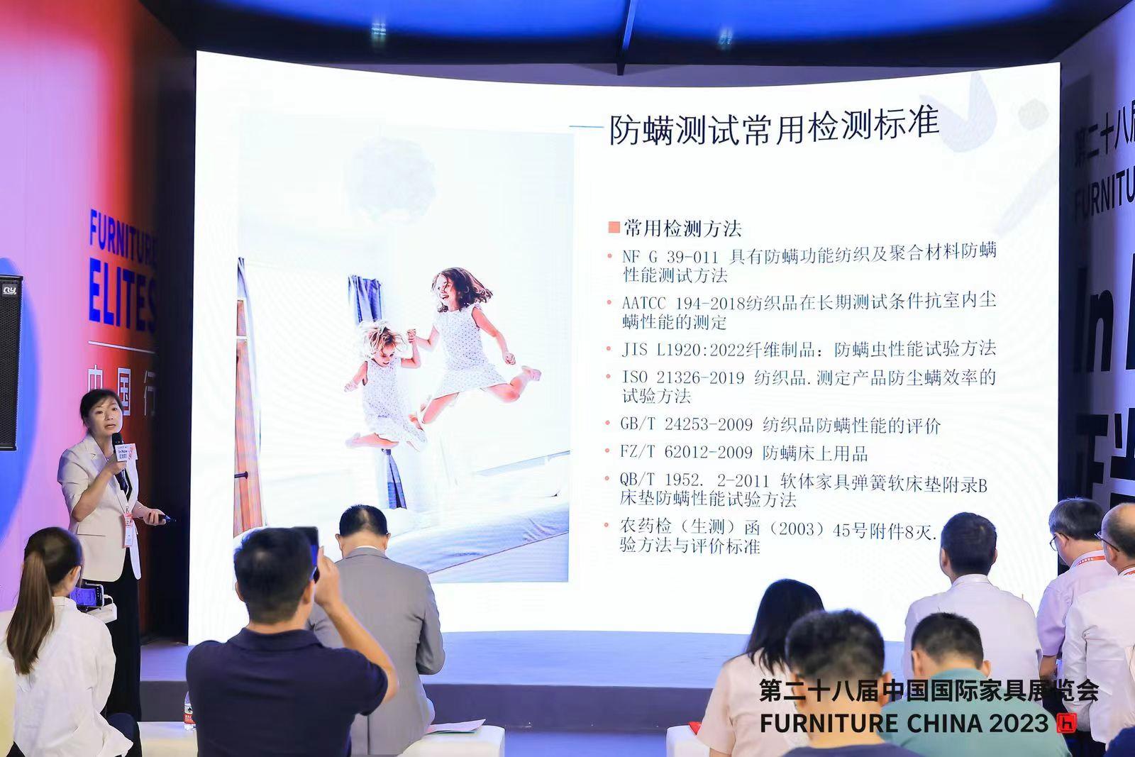 スイスのサンニンタイ株式会社の趙磊総経理は「マットレスのダニ対策の必要性」を講演し、「ダニの大きさはわずか0.1 ~ 0.5mmで、私たちの目には見えませんが、ダニはどこにでもいます。たとえば、マットレス、インテリア、寝具、マットなどです。一見「きれい」に見えるベッドの上には、数百万匹のダニがいるかもしれません。ダニの排泄物(DerPl)はアレルギーの大きな原因の一つです。ひどい場合は喘息などの呼吸器疾患を引き起こすこともあります。そのため、今では多くの家具メーカーがダニ対策の必要性に気づき始めています」。