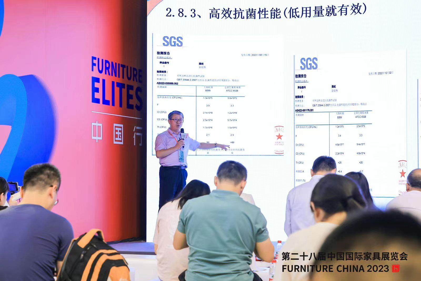 「2023年機能性材料家具業界応用シンポジウム」は、上海市新材料協会、上海市新材料協会抗菌防疫新材料専門委員会、上海潔宜康化工科技有限公司、中国家具協会及び上海博華展覧有限公司の共同主催で、2023年9月13日午前に開催されます。第28回中国国際家具展覧会の会場で行われました。