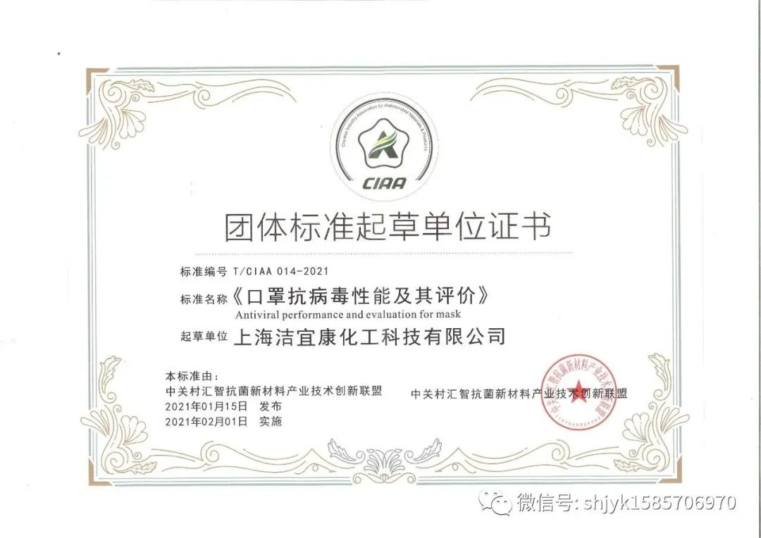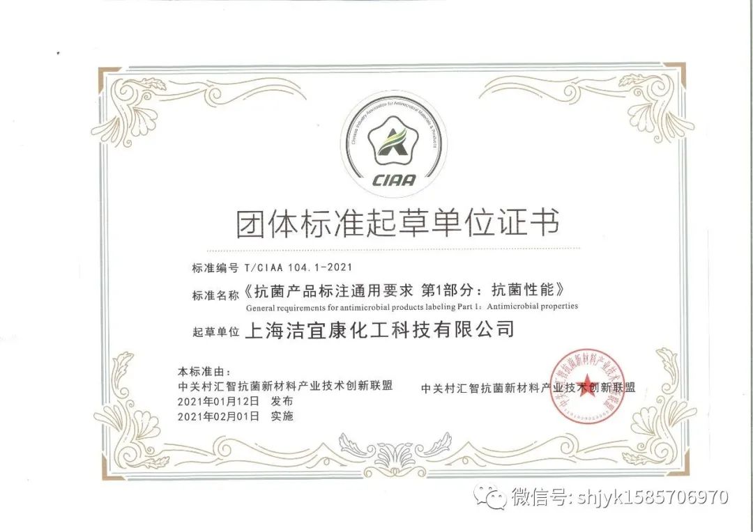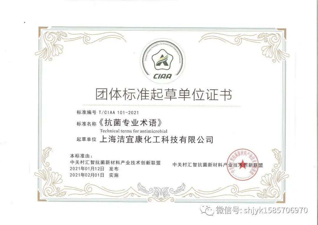 上海潔宜康化工科技有限公司は抗菌抗ウイルス業界の関連基準の制定に積極的に参与しており、疫病発生以来、疫病予防?抑制活動にも積極的に身を投じ、防疫物資の支援や寄付などの活動を行っており、各方面から積極的な評価を得ています。2021年に参加する抗菌業界標準は以下の通りです。