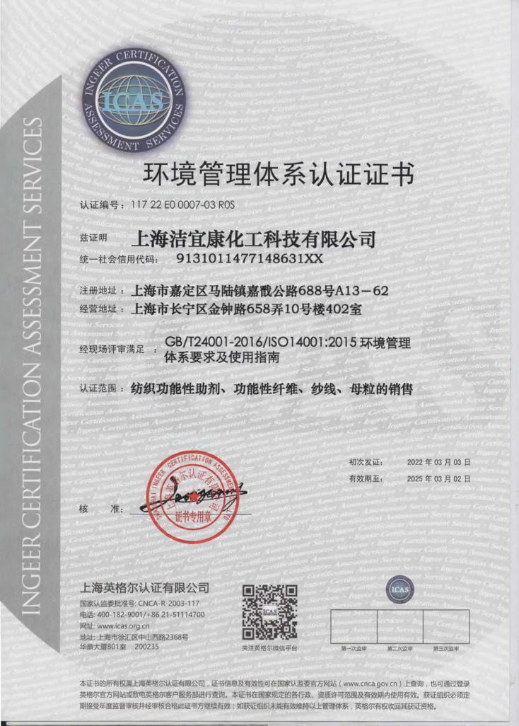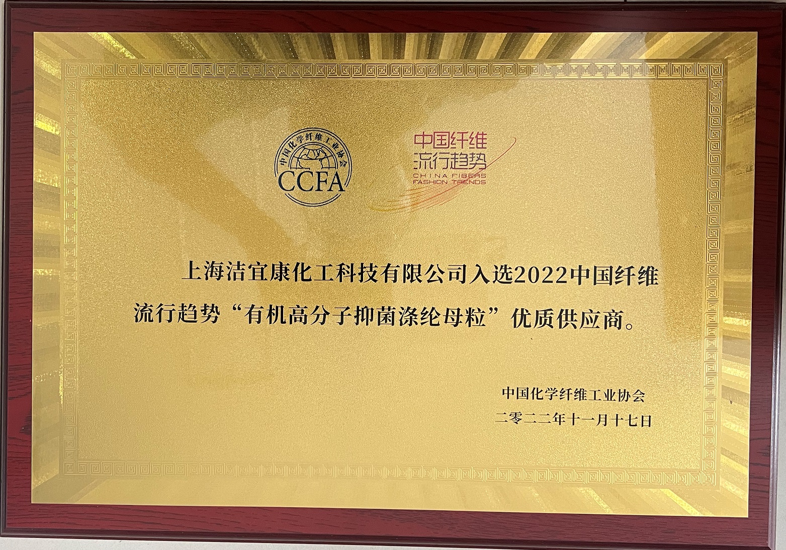 5、上海潔宜康公司は中国の繊維の流行の「有机高分子制菌ポリエステル母粒」の優良サプライヤーに選ばれました。