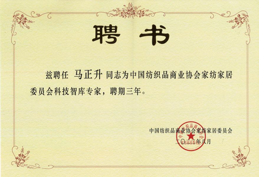 7、総経理の馬正升博士は中国紡績品商業協会紡績品家庭委員会科学技術シンクタンクの専門家を担当します。
