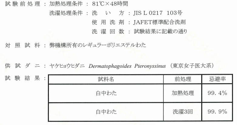 2. The wadding made of anti-mite polyester hollow staple fiber has been tested by Japanese standard JIS L 1920 "Test Method for Anti-mite Performance of Fiber Products", which meets the requirements of the standard;