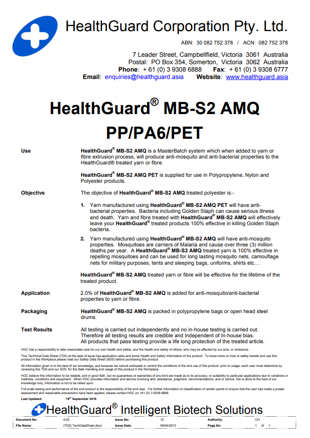 Functional auxiliariesFunctional Masterbatch/AdditivesFunctional fibers/yarnsAustralia HealthGuard®