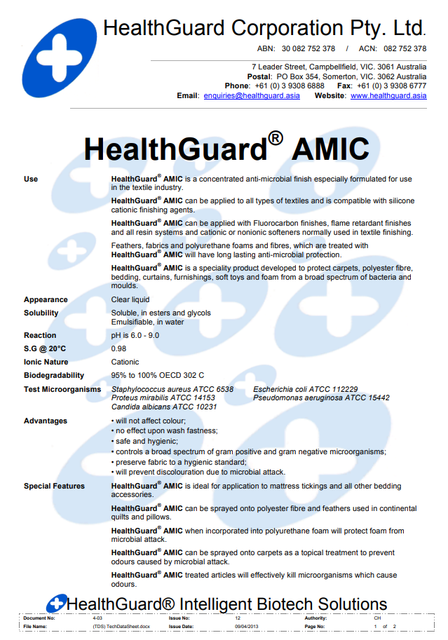 Functional auxiliariesFunctional Masterbatch/AdditivesFunctional fibers/yarnsAustralia HealthGuard®